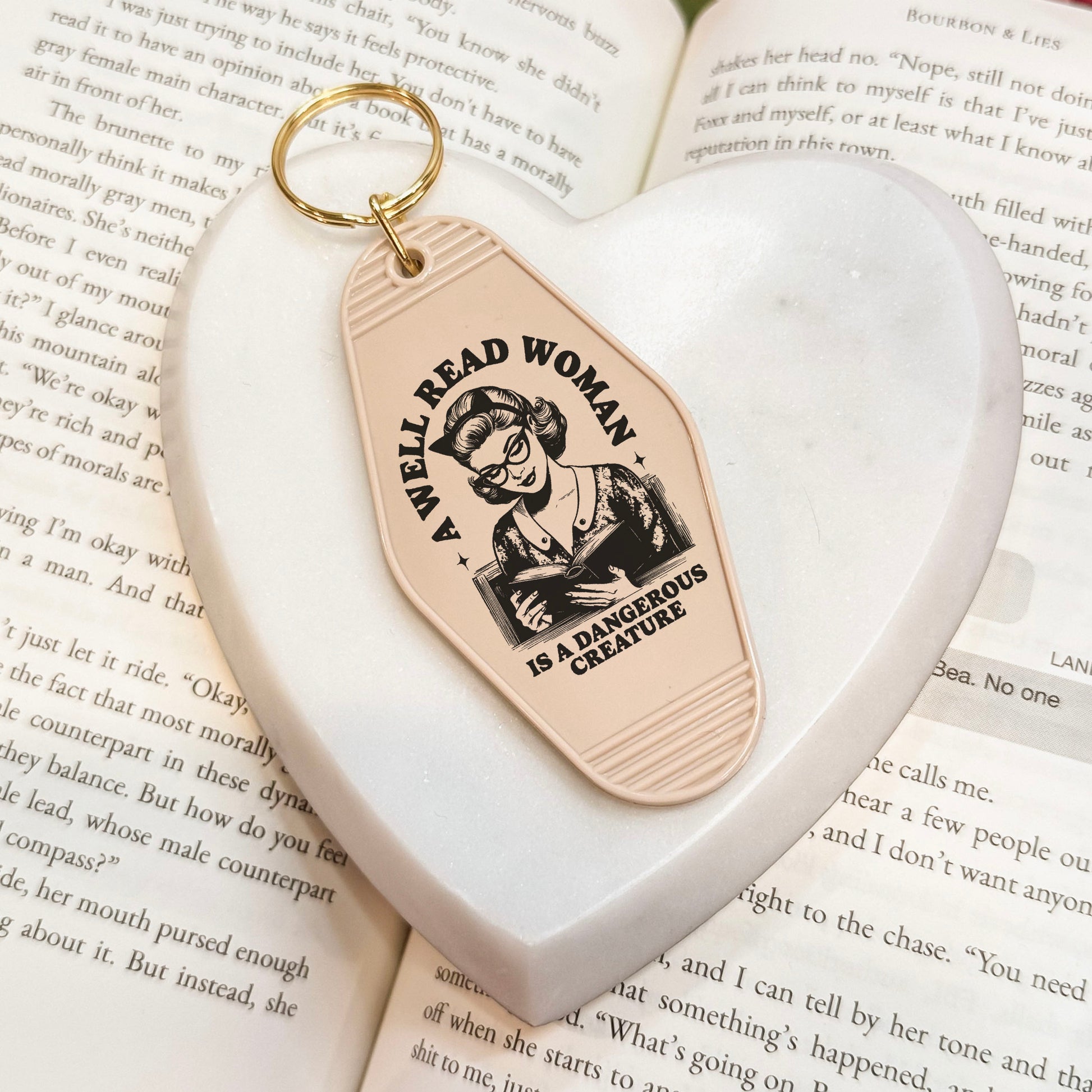 A Well Read Woman Is A Dangerous Creature Bookish Motel Keychain