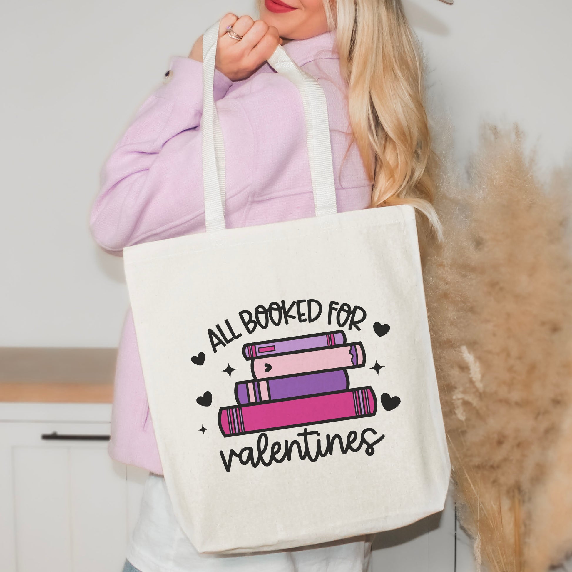 All Booked for Valentines Canvas Tote Bag for Book Lovers