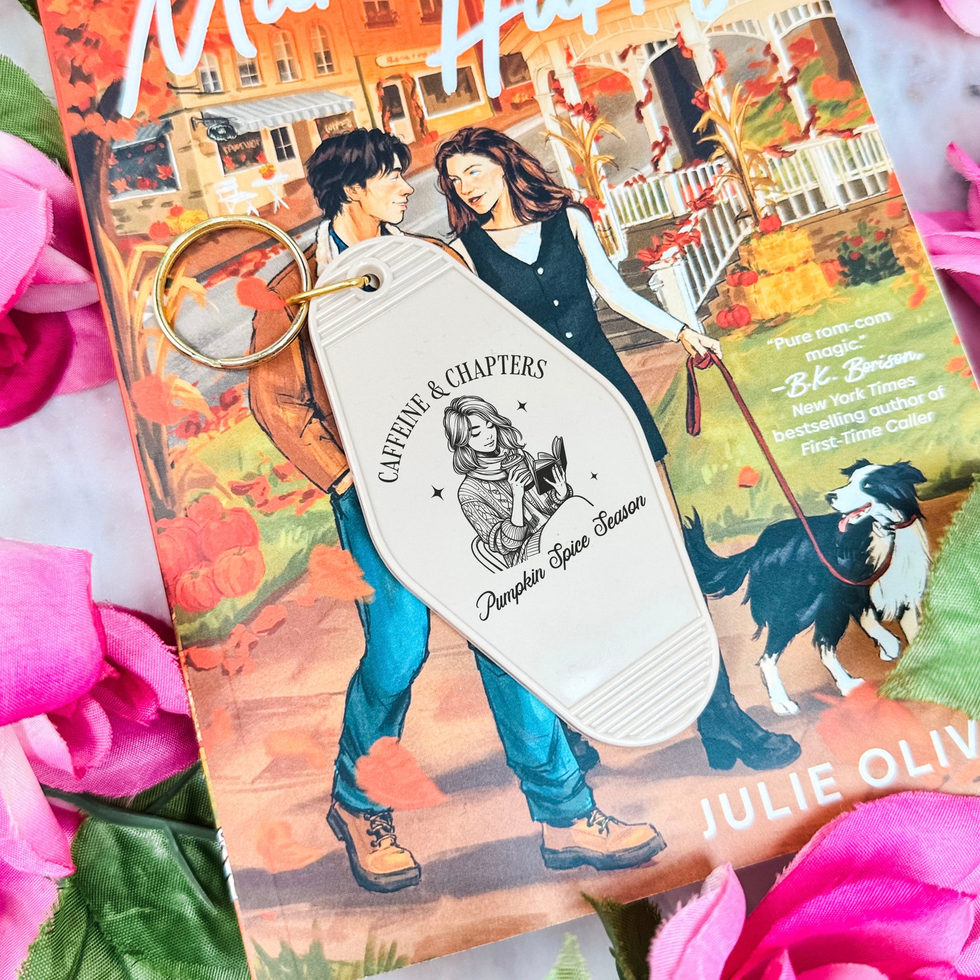 Cozy up to autumn with our Caffeine and Chapters Pumpkin Spice Season motel style bookish keychain, designed for readers who love coffee, fall vibes, and their next great book. This durable motel keychain is perfect for keeping your keys stylishly together while showing off your love for reading and pumpkin spice. Featuring a permanent UVF decal on both sides, it is built to last and makes the perfect small accessory for book lovers, bookworms, and anyone celebrating the cozy season.