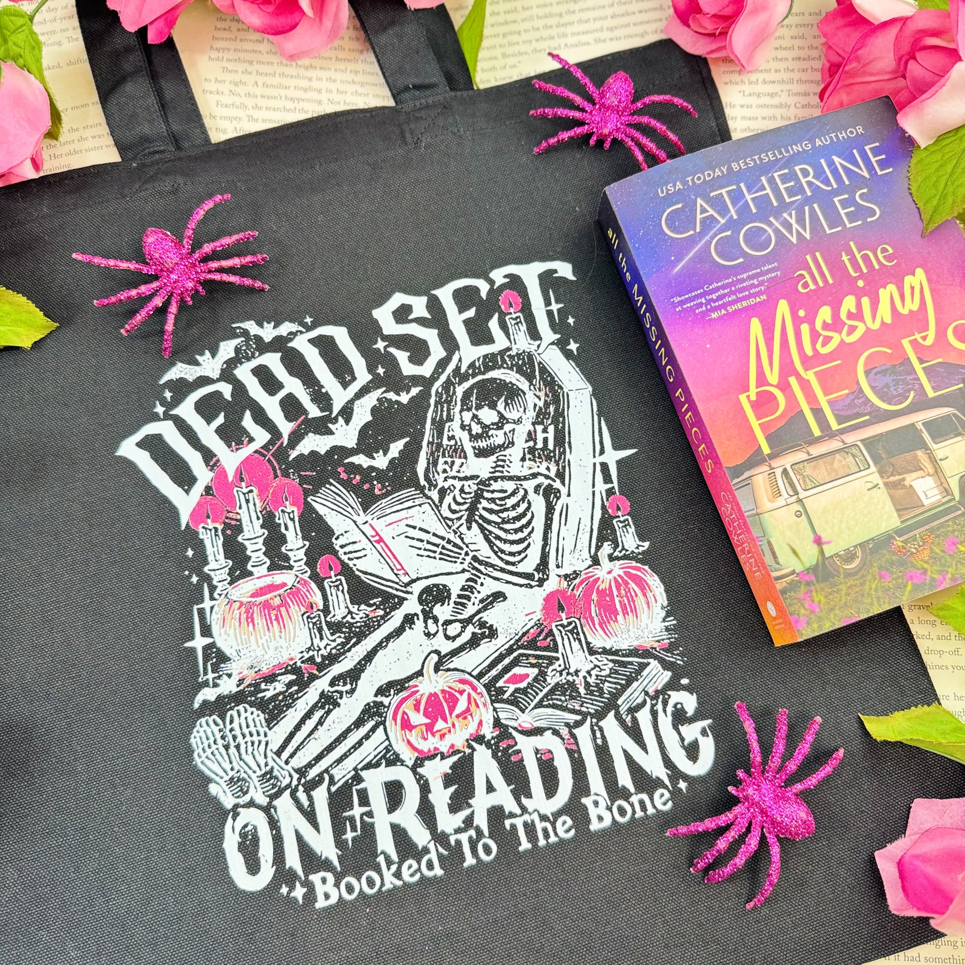 Bookish tote bag, fall book tote, gothic tote bag, spooky tote bag, Halloween book tote, cozy season tote, library tote bag, canvas book tote, reader tote bag, Dead Set On Reading tote, dark academia tote, bookstore tote bag, horror bookish tote, gothic book merch, fall accessory tote, skeleton tote bag, witchy tote bag, pumpkin tote bag, book lover tote, haunted season tote, cute bookish tote, bookish gift idea, creepy cute tote, aesthetic tote for readers, Halloween canvas tote, cozy fall tote, bookish collection tote, haunted book tote, witchy reader tote, gothic bookish accessory, fall reading tote, bookish merch tote, tote for bookworms, spooky reads tote, tote for autumn readers, tote for fall books, tote bag for Halloween books, book haul tote bag, everyday reader tote, canvas bag for readers, tote for bookish girls, tote for fall book clubs, Halloween reader gift