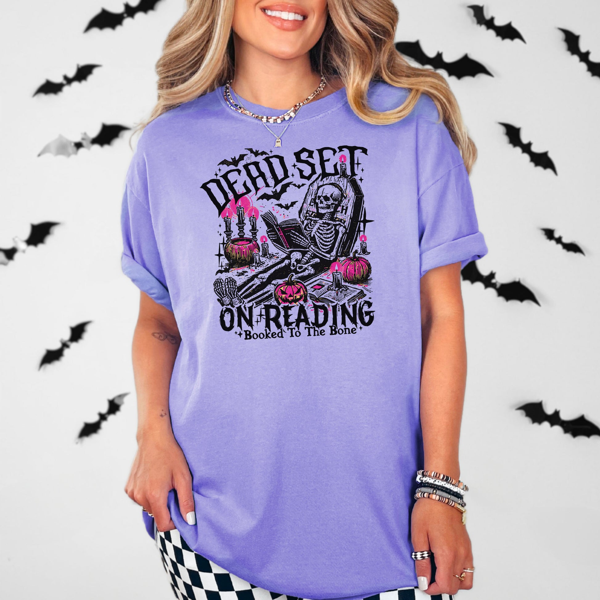 Dead Set On Reading - Comfort Colors Heavyweight Shirt | Halloween Bookworm Tee