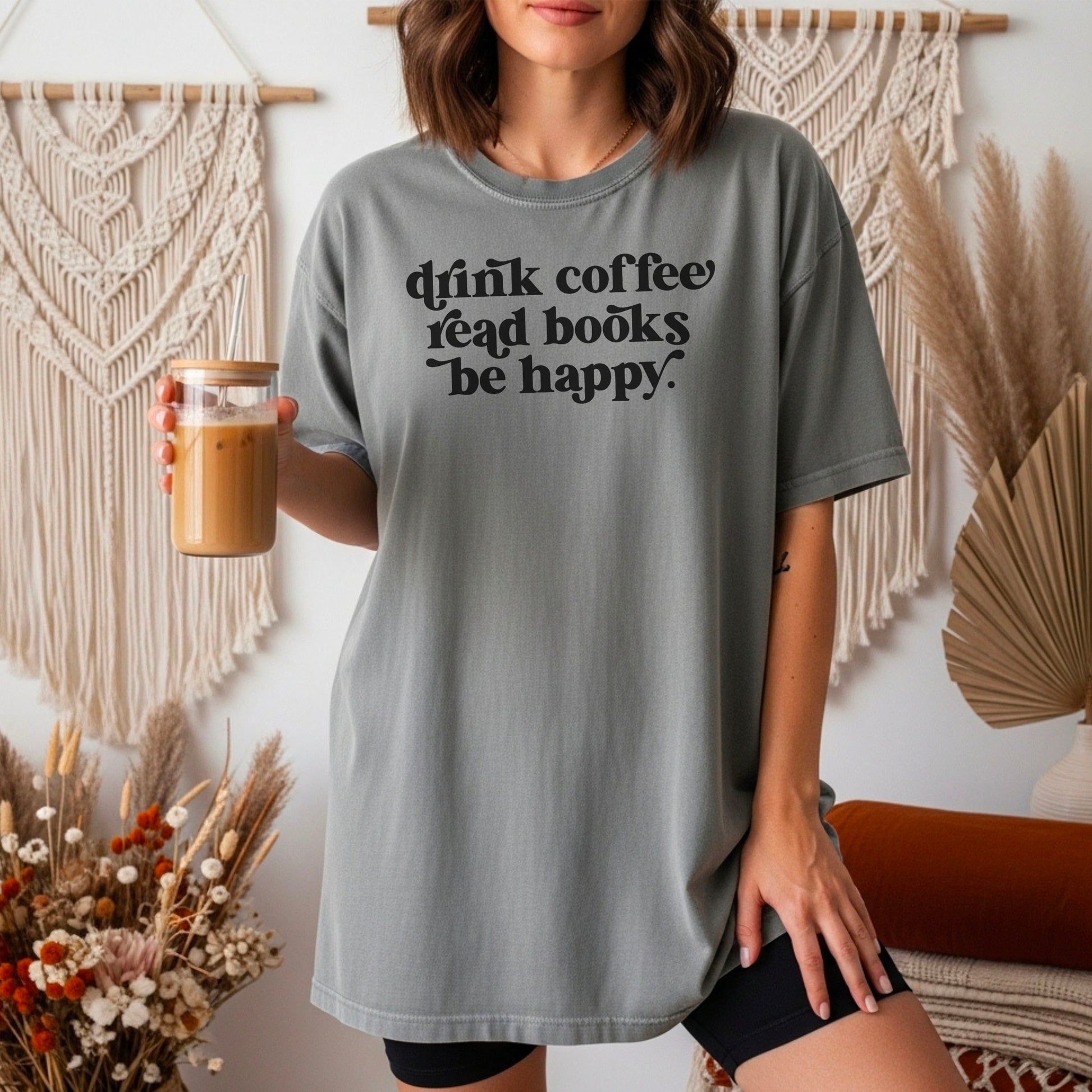 Drink Coffee Read Books Be Happy Heavyweight Comfort Colors Shirt