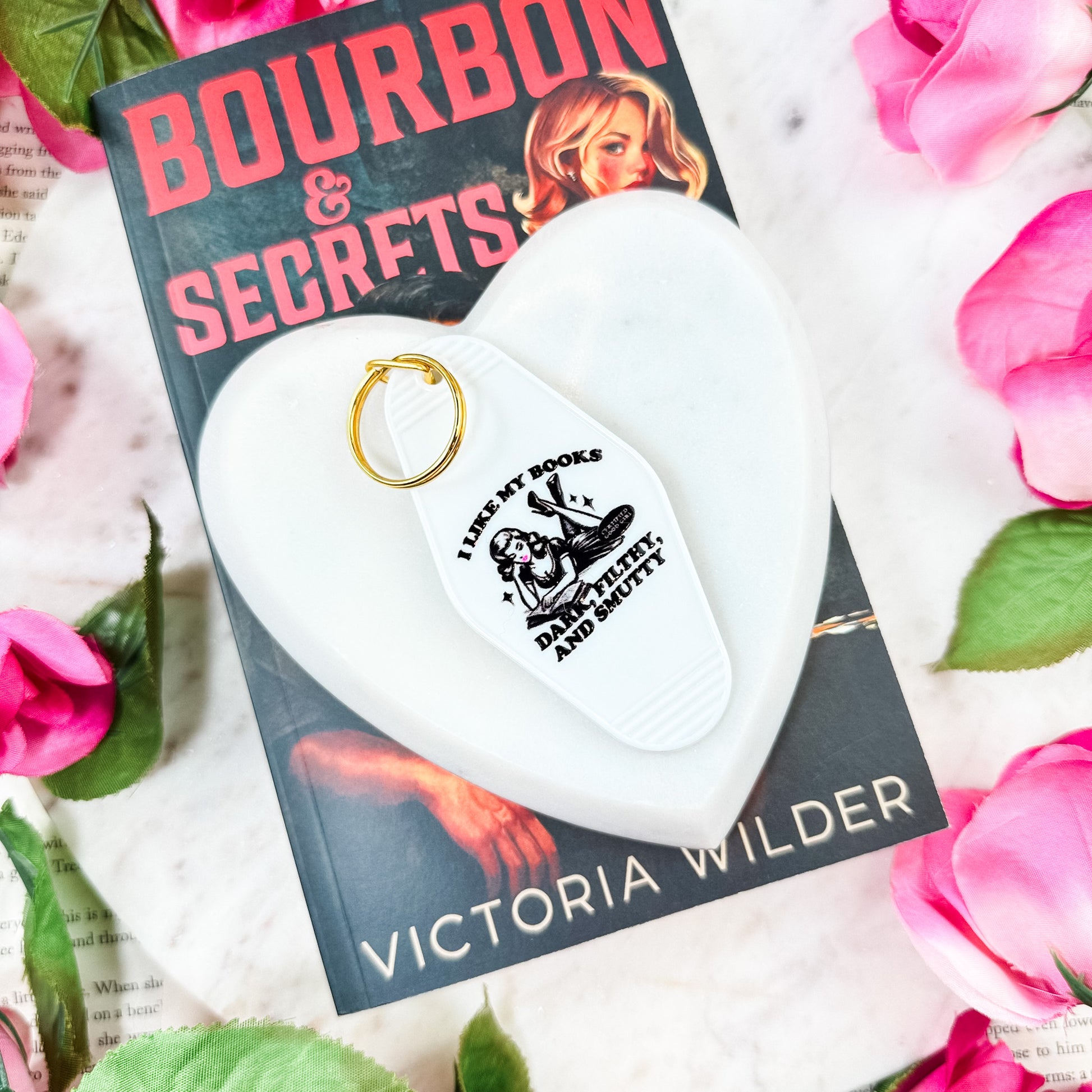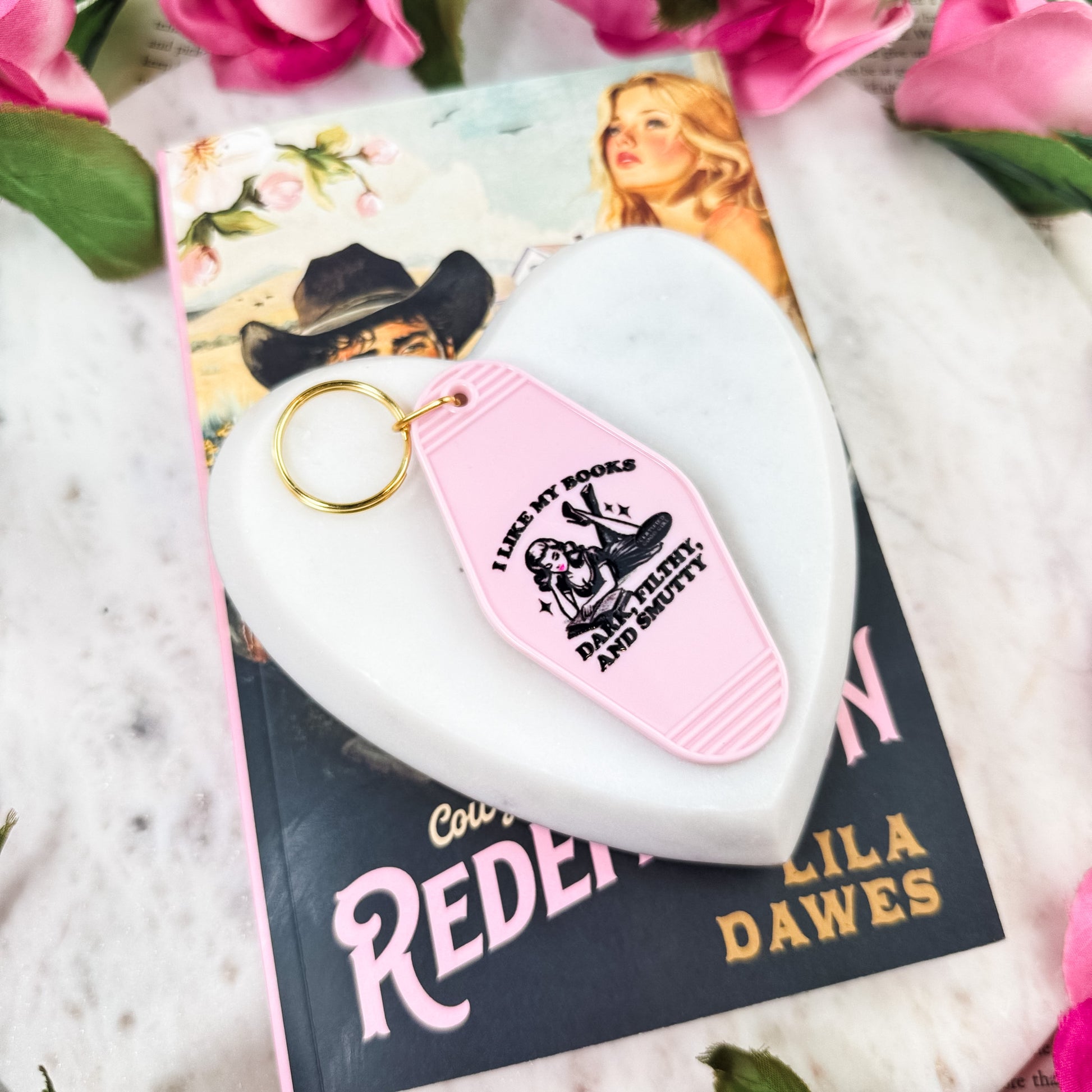 I Like My Books Dark Filthy and Smutty Motel Style Keychain