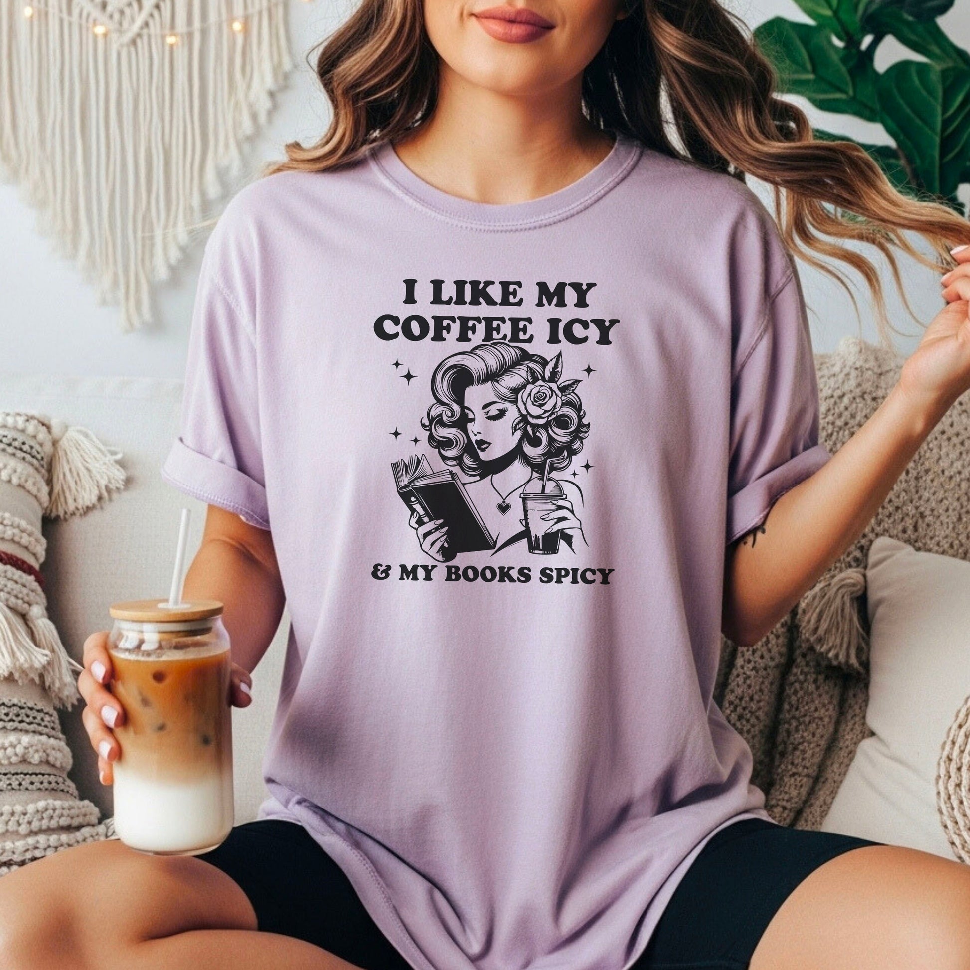I Like My Coffee Icy & My Books Spicy Heavyweight Comfort Colors Shirt