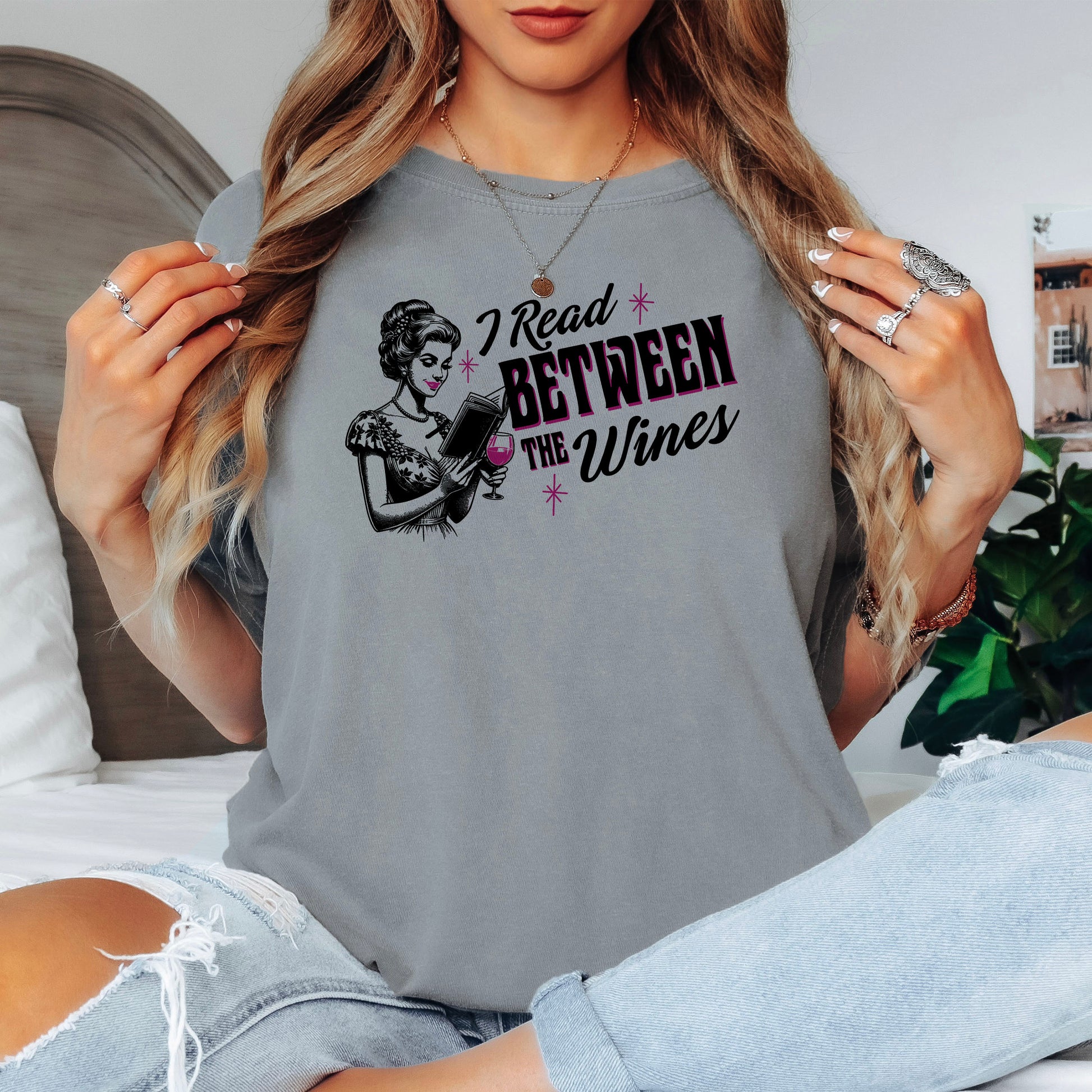 This heavyweight comfort colors shirt features the playful and perfectly bookish I Read Between The Wines design, created for readers who love winding down with a good romance and a cozy glass of wine. The relaxed, lived-in feel of comfort colors makes this tee your new favorite for slow mornings, late-night chapters, and reading days spent curled up at home. The high quality print brings the retro-inspired book girl illustration to life, giving this shirt a dreamy vintage vibe that fits effortlessly into the bookish drinks collection.