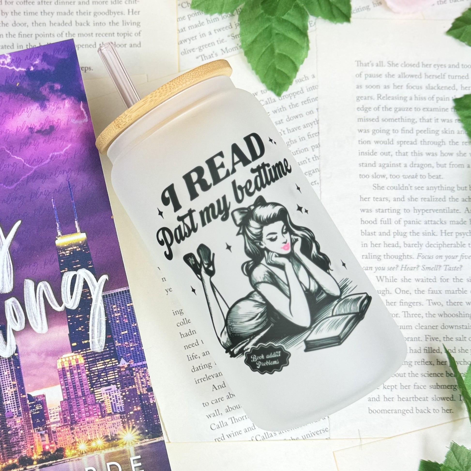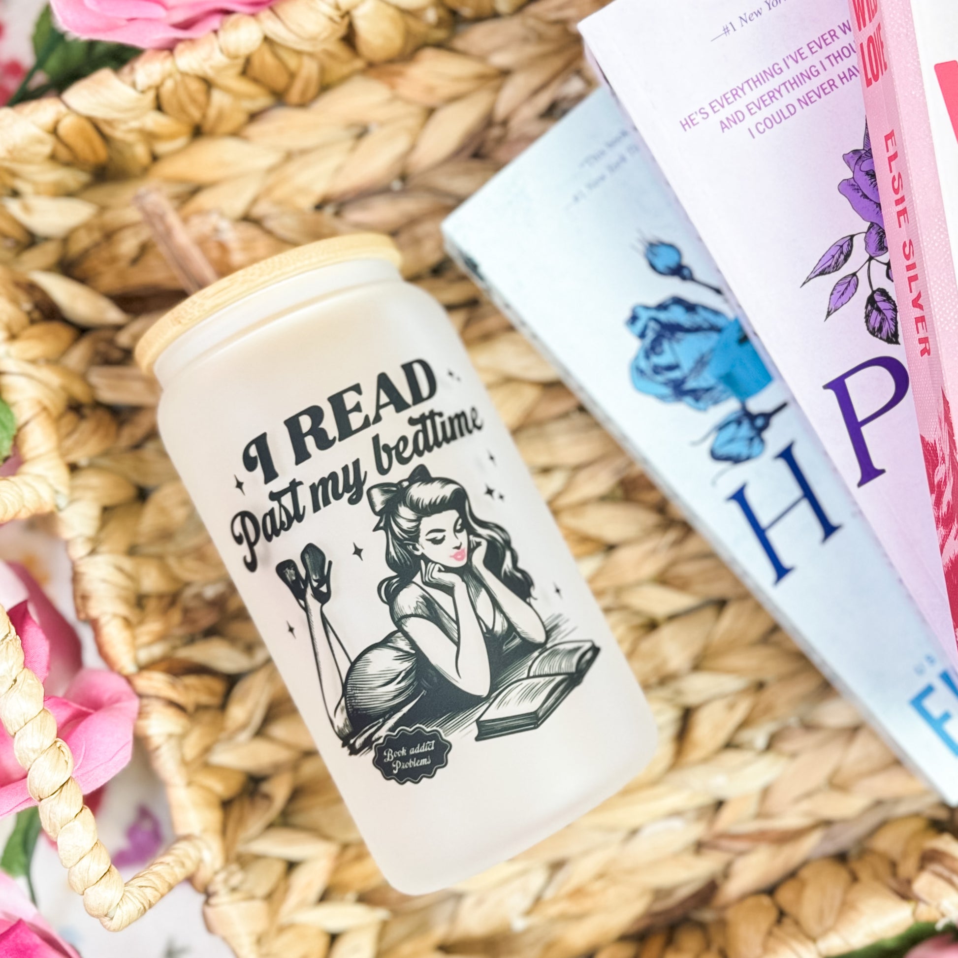 I Read Past My Bedtime Frosted Glass Cup w/Bamboo Lid + Plastic Straw
