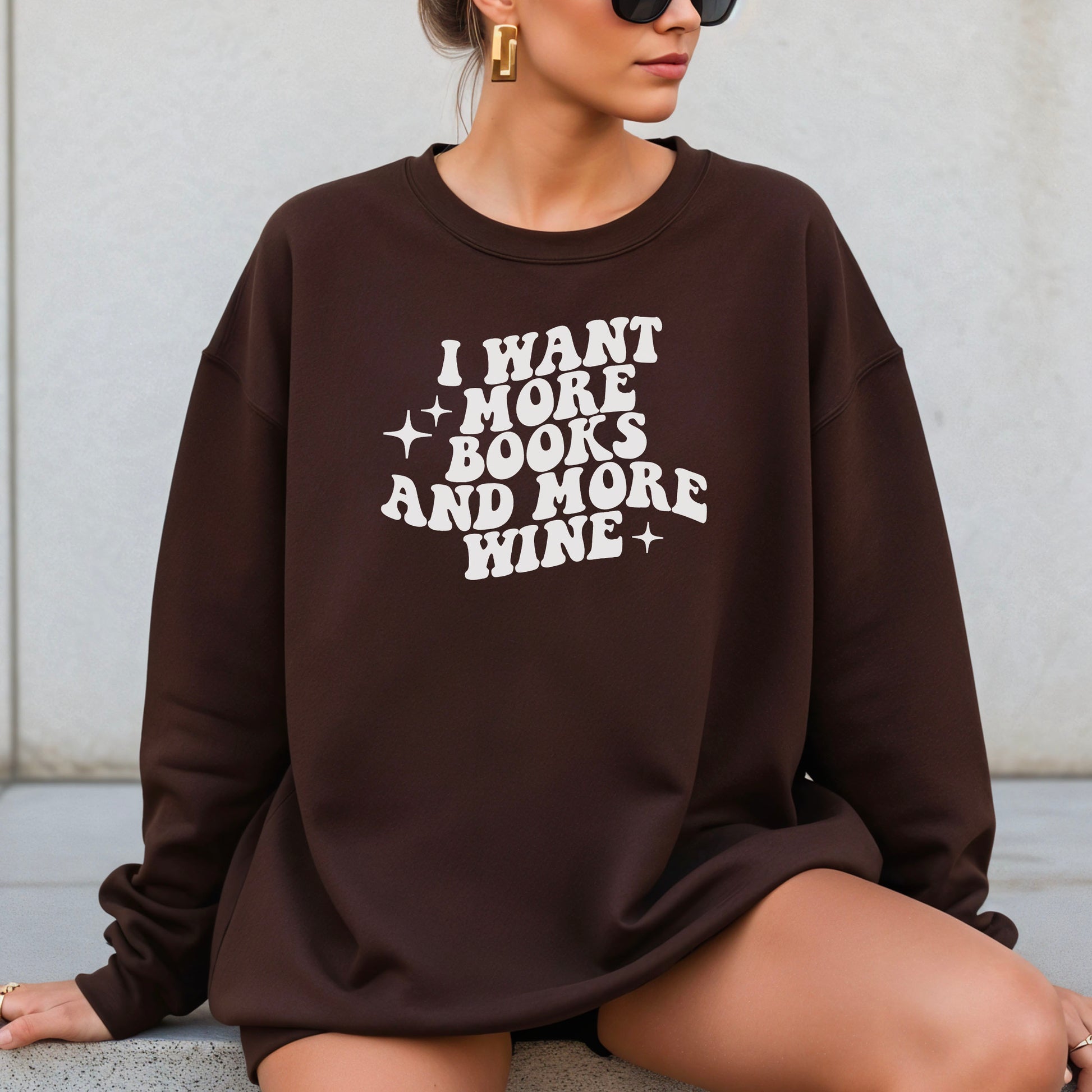 This Gildan crewneck sweatshirt features the I Want More Books And More Wine design, combining classic comfort with a relaxed bookish drinks vibe. Ideal for colder days, this sweatshirt is perfect for reading marathons, casual wine nights, or gifting to a book lover who appreciates comfort and humor.