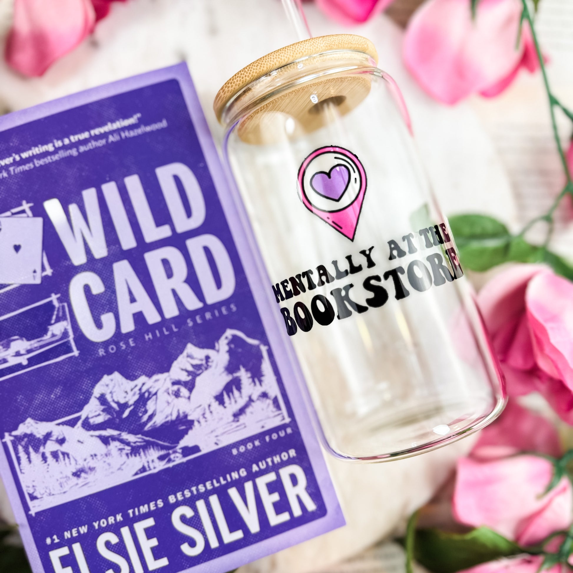 Mentally at the Bookstore Clear Glass Cup with Bamboo Lid & Straw | Bookish Drinkware
