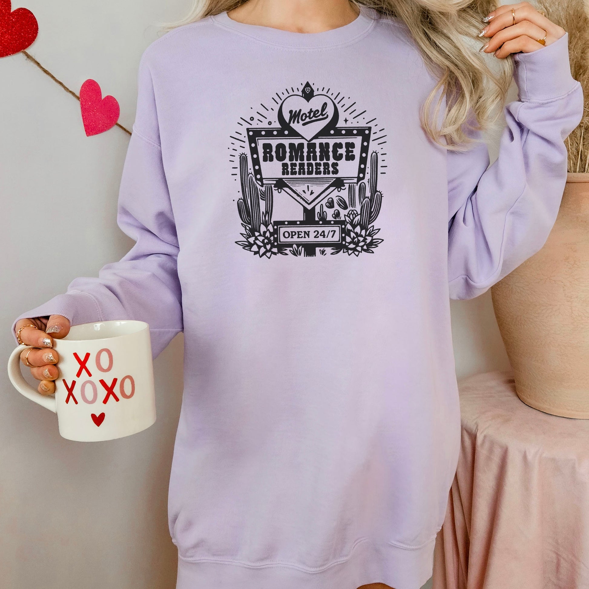 Romance Readers Motel Comfort Colors Sweatshirt | Cozy and Bookish Apparel for Every Day