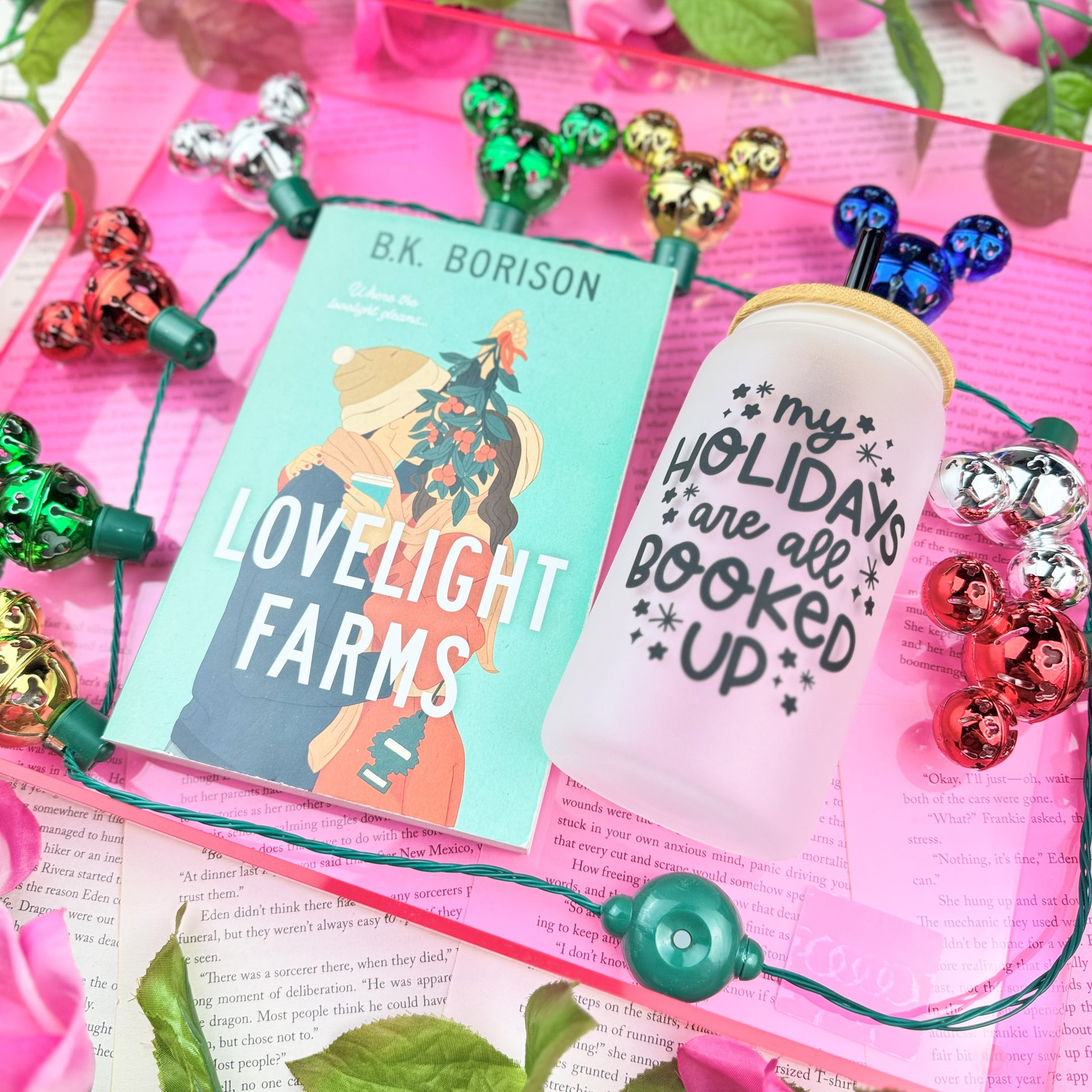 My Holidays Are All Booked Up Frosted Glass Cup – Bookish Holiday Tumbler with Bamboo Lid & Straw