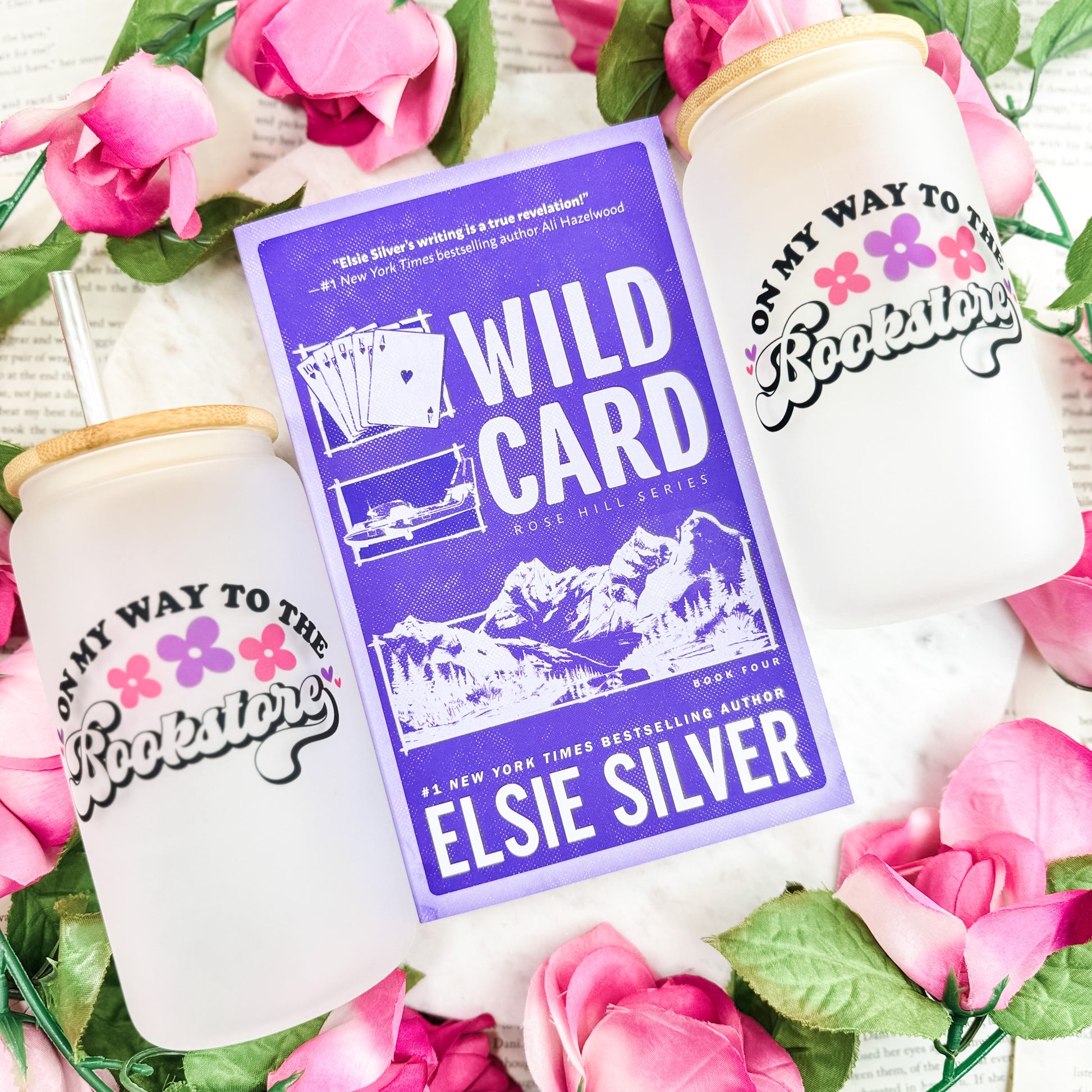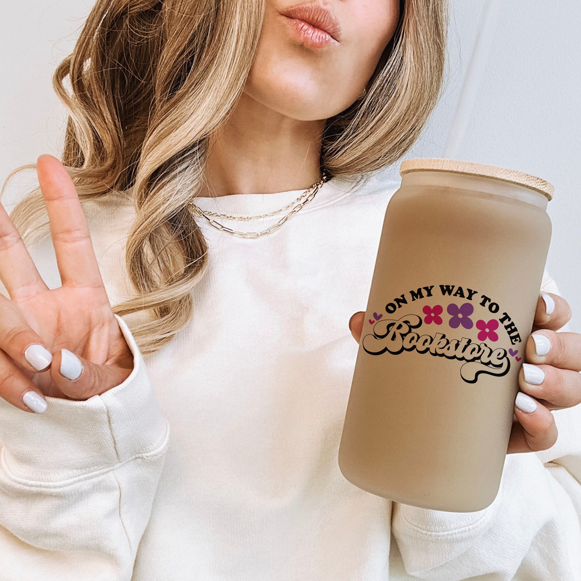 On My Way to the Bookstore Frosted Glass Cup with Bamboo Lid and Straw – Perfect for Bookstore Adventures