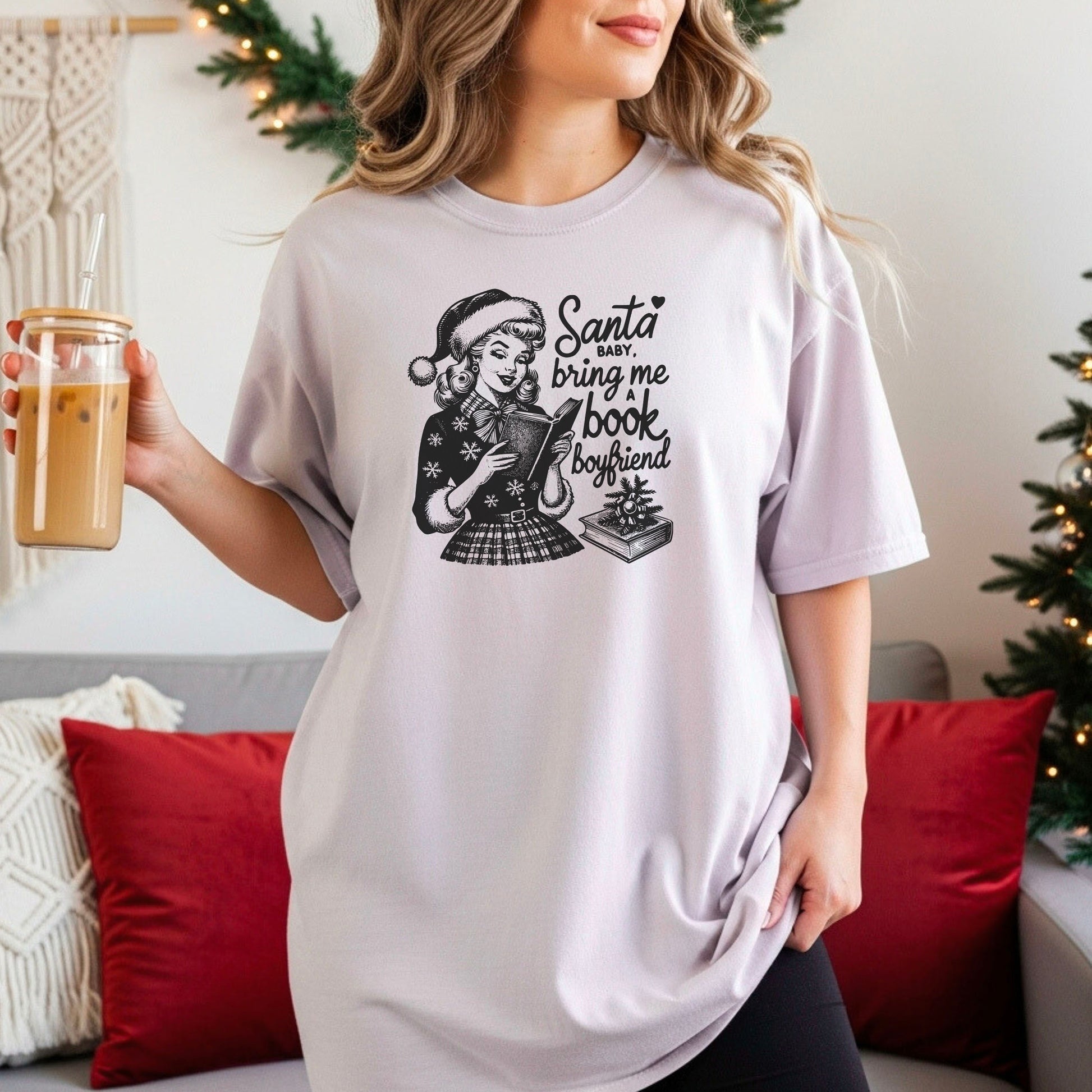 Santa Baby Bring Me A Book Boyfriend Heavyweight Comfort Colors Shirt