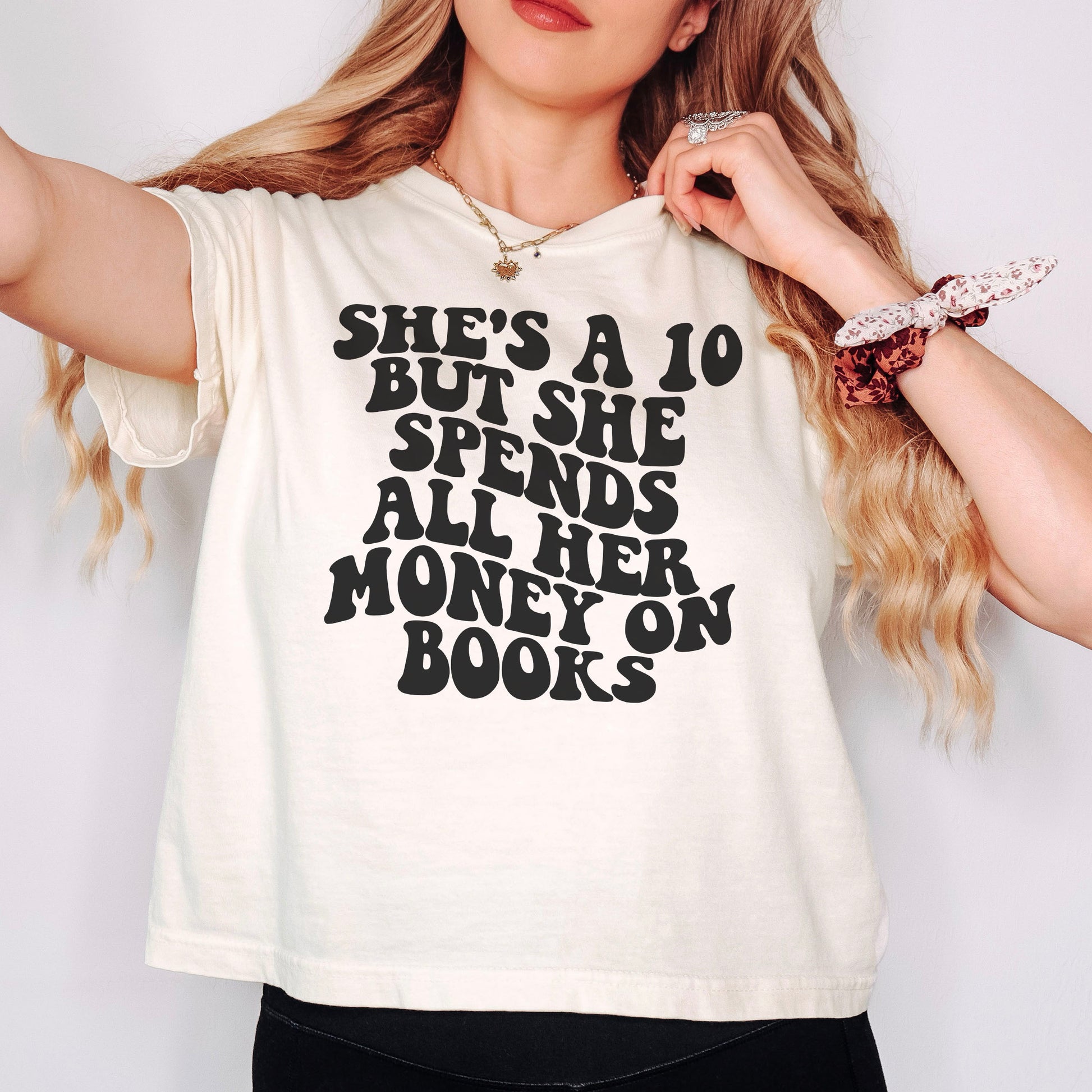 She's A 10 But She Spends All Her Money On Books Comfort Colors Boxy Cropped Shirt