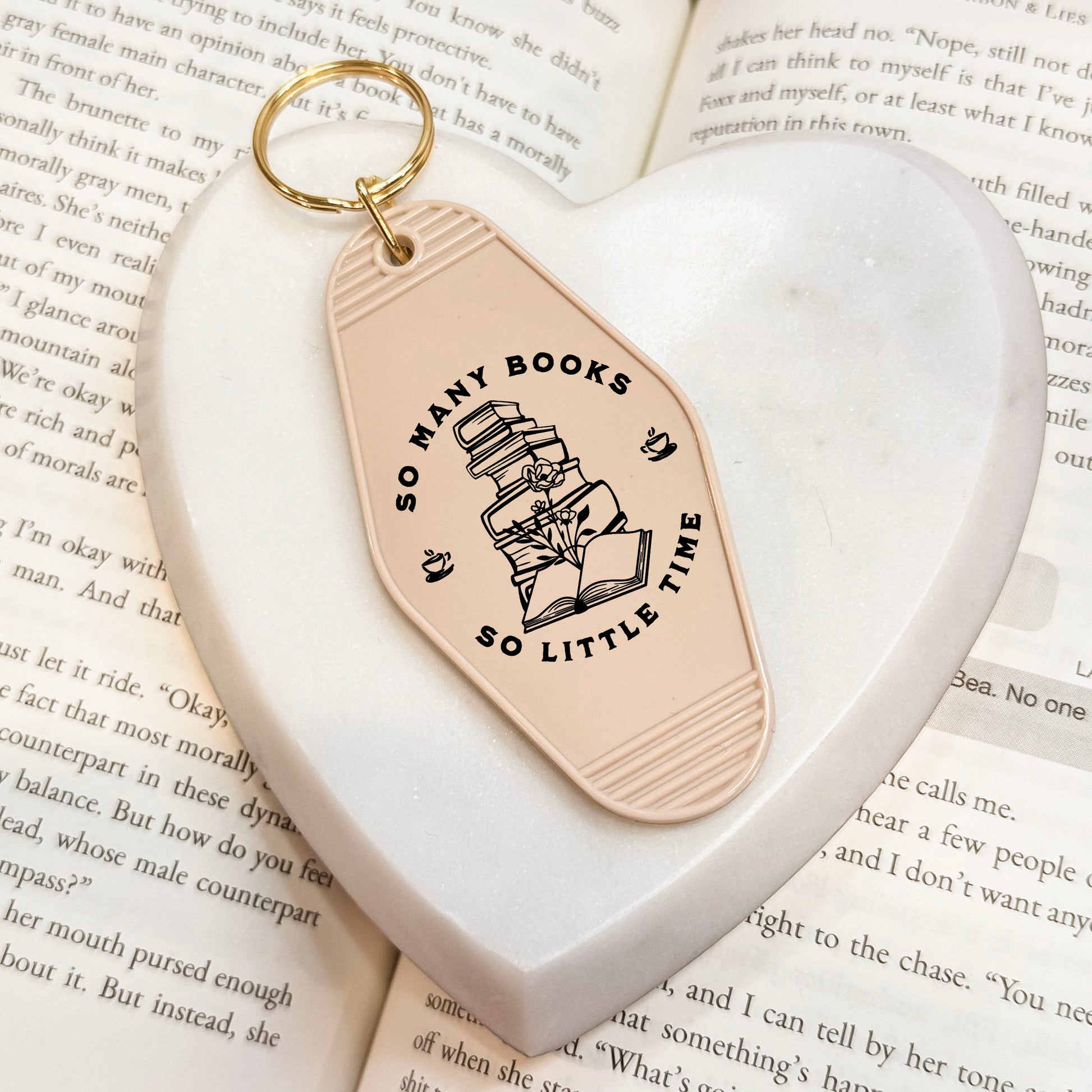 So Many Books Motel Keychain Bookish Vintage UVF Decal Keychain For Readers