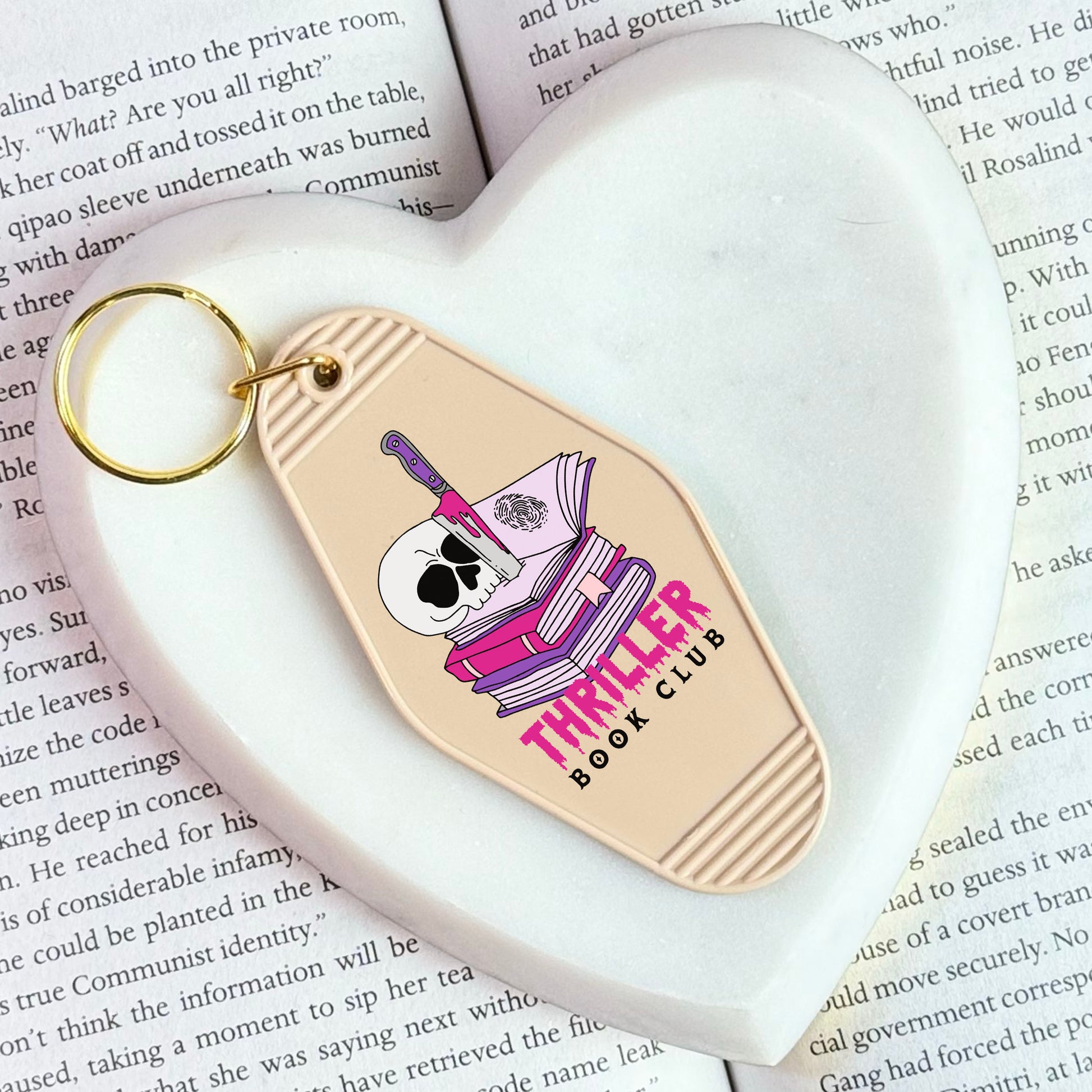 Thriller Book Club Motel Keychain for Mystery and Crime Book Lovers