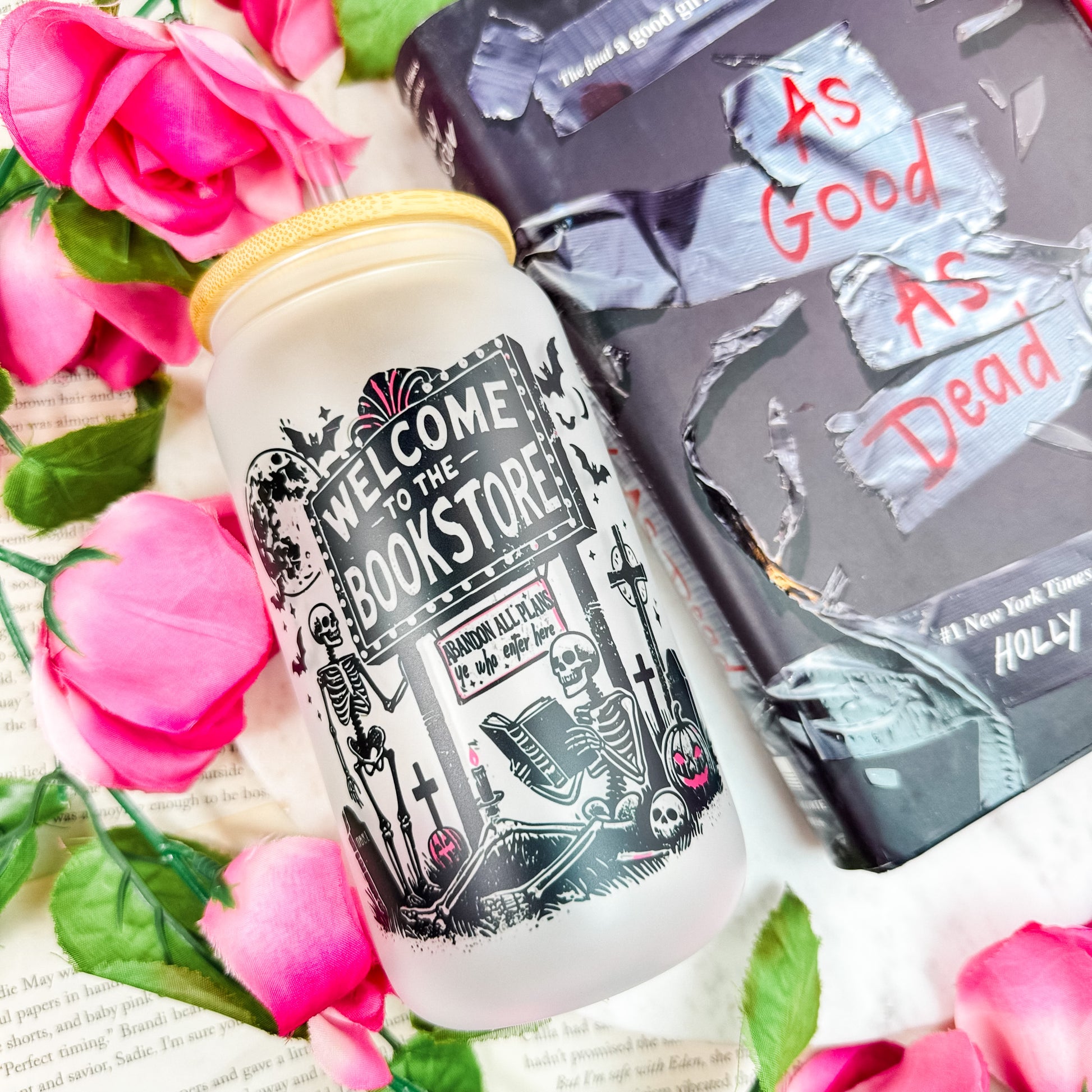 Bookish glass cup, fall reading cup, spooky book tumbler, frosted glass book cup, gothic reader glass, Halloween book cup, bamboo lid glass, iced coffee book cup, tea lover glass, fall bookish merch, cozy reading drinkware, witchy book glass, skeleton book cup, haunted bookstore glass, spooky season cup, iced latte book cup, dark academia glass, bookworm tumbler, bibliophile glass cup, autumn reading accessory, Halloween drinkware, reusable straw cup, iced coffee tumbler, hand wash only cup, sublimation print glass, fall cozy cup, witchy reading glass, gothic spooky glass, cute fall glass cup, bookish fall accessory, iced tea book cup, fall book lover gift, haunted reader cup, bamboo lid tumbler, cozy book drinkware, comfort reading glass, Halloween aesthetic book cup, book club drinkware, creepy cute cup, bookish iced coffee glass, trendy fall book cup, bookstore inspired glass, gothic romance cup, spooky bibliophile glass, cozy latte book glass